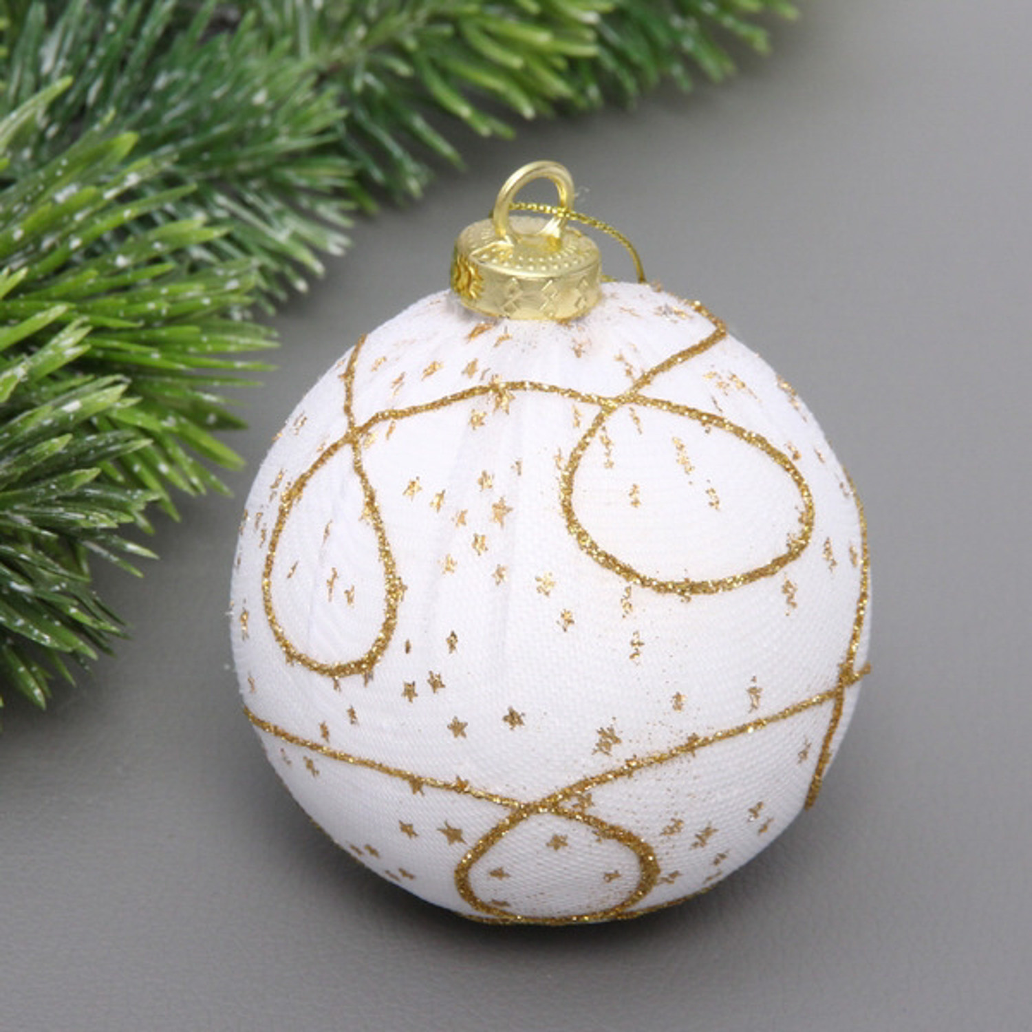 Новогодний шар "Зимнее кружево" 8 см, Золото