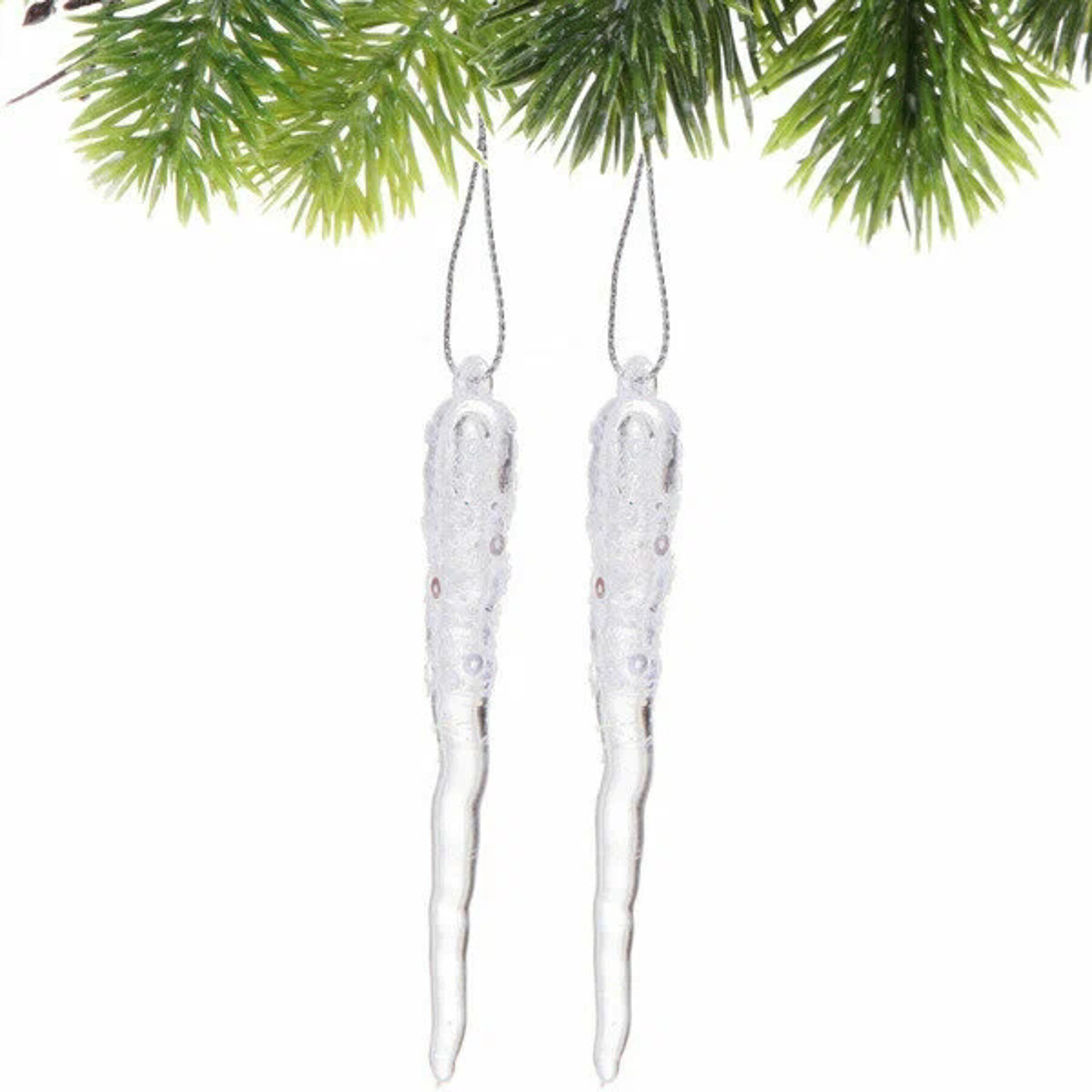 Подвеска "Морозная сосулька" 10 см (набор 2 шт), Белый