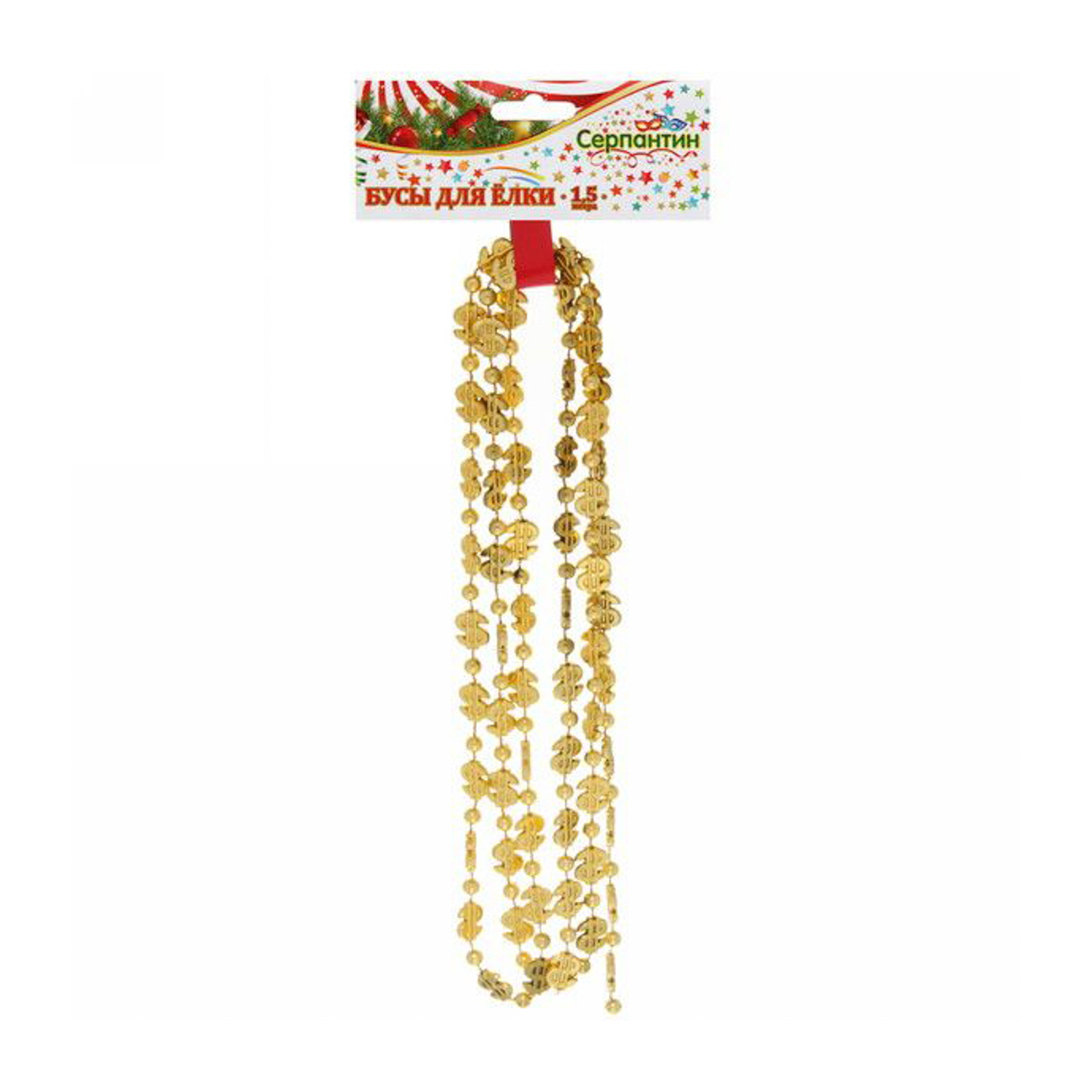 Бусы на ёлку 1,5м "Доллар" золото 1,2см