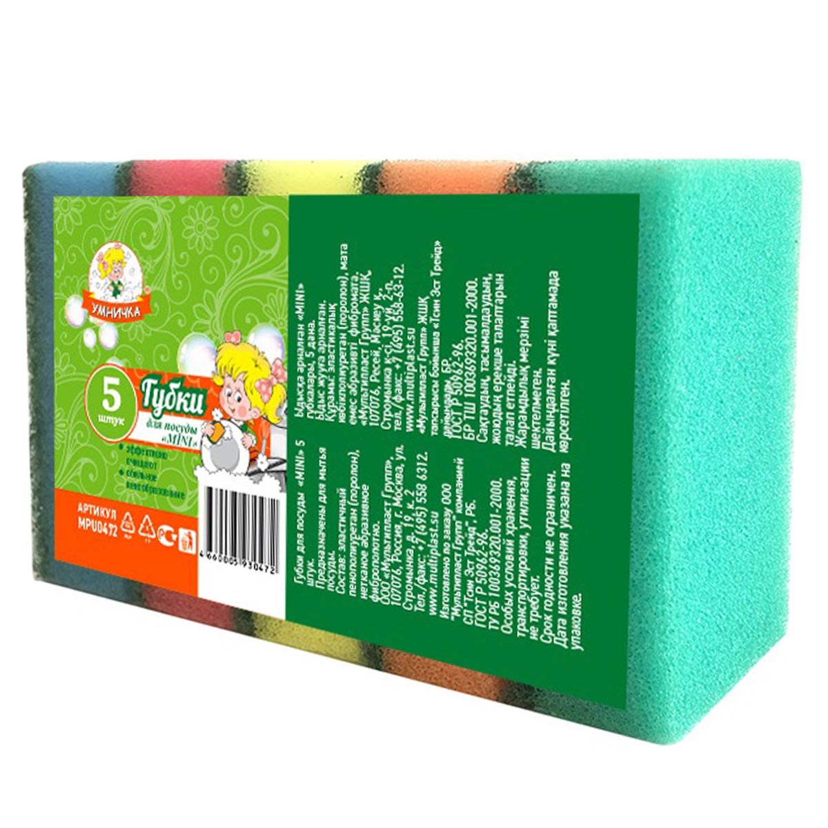 Губки д/посуды MINI 5шт "Умничка" MPU0472 ("МультиПласт") *60