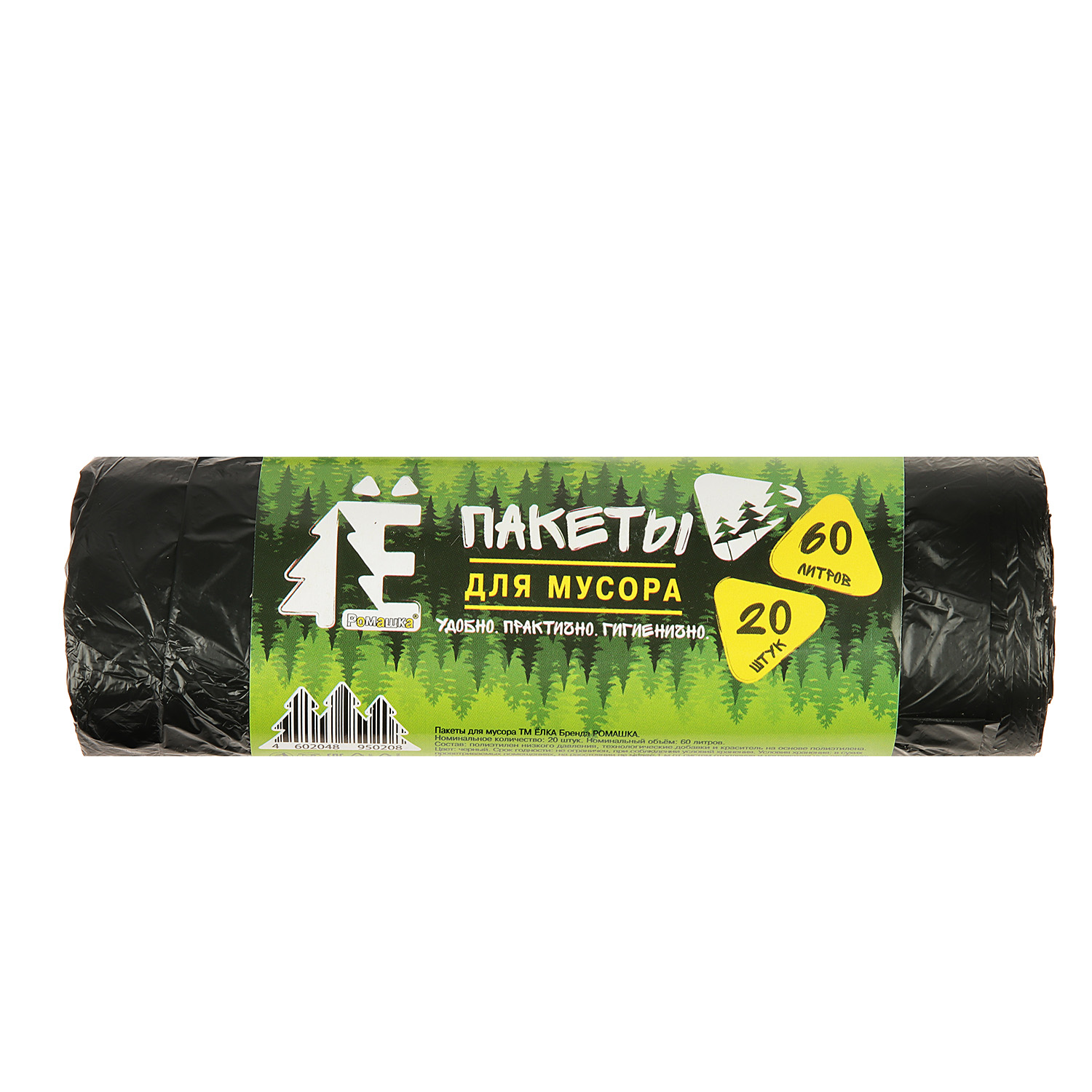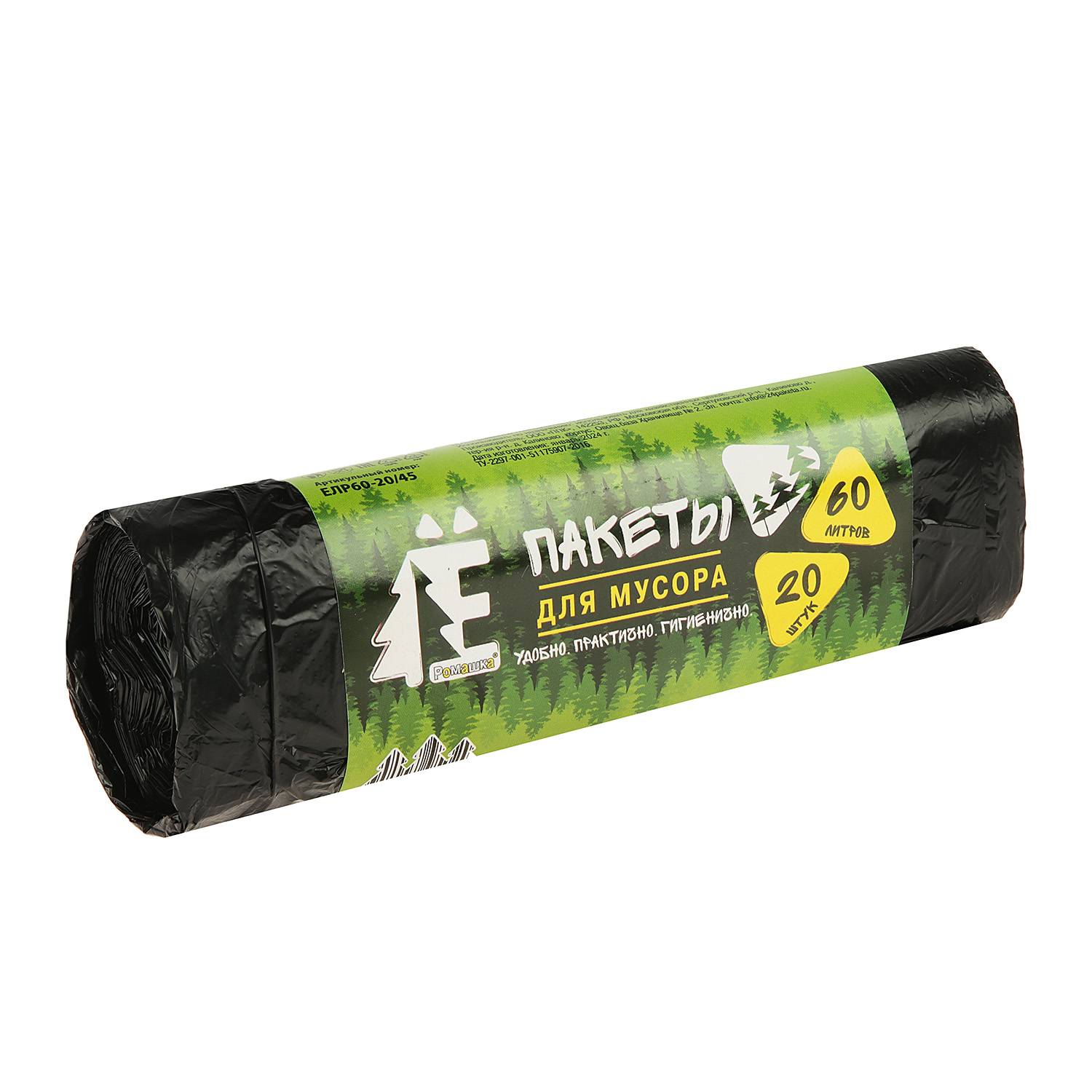 Мешки для мусора 60л*20шт толщ.6мкм "Ё" ПНД арт.ЕЛР60-20/45 "Ромашка" *45