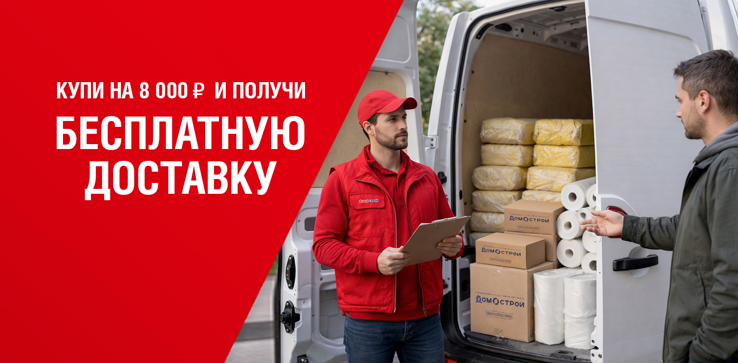 При совершении покупок на сумму от 8 000 руб. в розничном магазине ДомоСтрой и на сайте perm.domostroy.shop действует бесплатная доставка в черте города. Вы можете выбрать подходящую дату и временной интервал доставки, доступную при покупке товаров, и в течение назначенного времени мы привезем товар.