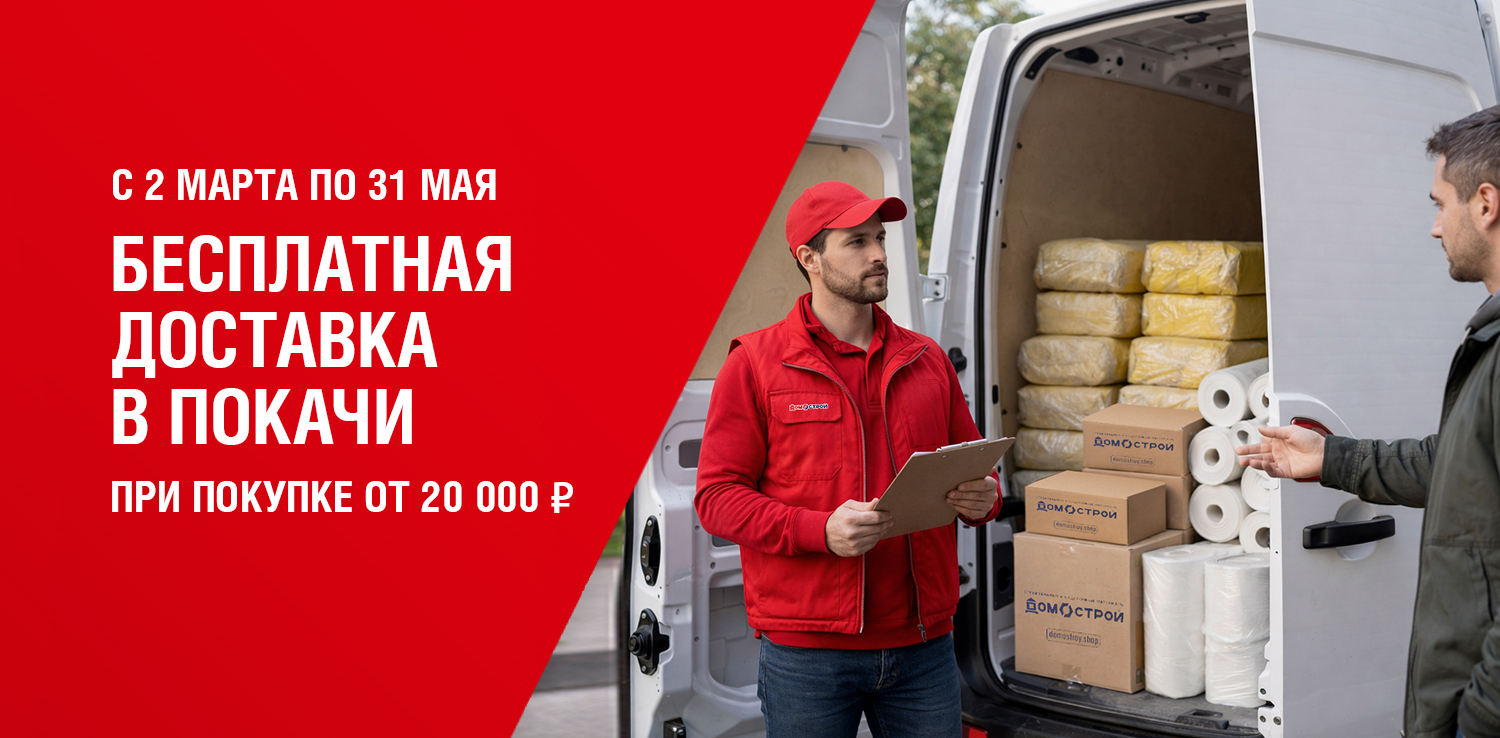 С 2 марта до 31 мая 2026 при совершении покупок на сумму от 20 000 руб. в розничном магазине ДомоСтрой и на сайте langepas.domostroy.shop действует бесплатная доставка в Покачи! Успейте купить все необходимое – мы доставим заказ бесплатно прямо до вашего дома.
