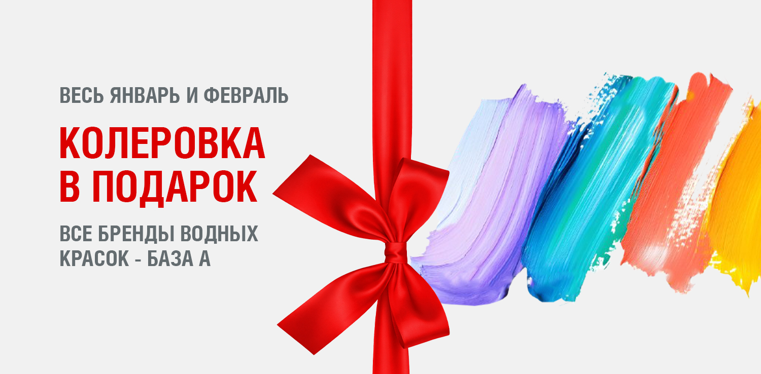 С 2 января 2026 по 28 февраля 2026 при покупке красок на водной основе (база А) - вы получаете колеровку в подарок. Технология компьютерной колеровки поможет вам воплотить любую дизайнерскую задумку. Просто выберите идеальный оттенок!